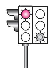 Aksine bir durum yoksa, şekildeki gibi ışıklı trafik işaret cihazında kırmızı ışık ve yeşil oklu ışığın birlikte yandığını gören sürücü, aşağıdakilerden hangisini yapabilir?