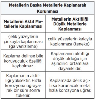 Metalleri korozyondan korumak için farklı yöntemler vardır. Bu yöntemlerden biri de metalleri farklı metallerle kaplamaktır.