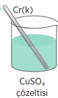 Elinde beş ayrı metalden yapılmış karıştırma çubuğu olan kimya teknisyeninin, hazırladığı çözeltileri bu çubukları kullanarak karıştırması gerekmektedir. Çözeltide herhangi bir kimyasal tepkimenin olmaması gerektiğine göre kimyagerin hangi şıkta yaptığı karıştırma işlemi doğrudur? (Metallerin aktiflik sırası:Mg > Al > Zn > Cr > Fe > Cu > Ag)