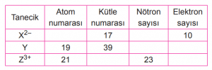 Tabloda verilen X 2-–, Y ve Z 3+ tanecikleri ile ilgili aşağıdaki bilgilerden hangisi yanlıştır?