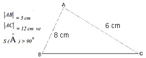 Şekildeki (ABC) üçgeninde verielnlere göre; |BC| nin alabileceği en küçük tam sayının değeri kaç cm’ dir ?