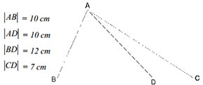 Şekildeki (ABC) üçgeninde verilenlere göre; |AD| kaç cm dir ?