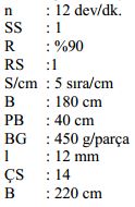 Yukarıdaki verilere göre düz örme (triko) makinesinde saatte üretilen ilmek sıra sayısı aşağıdakilerden hangisidir?