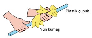 Negatif elektrik yüklü plastik çubuk ve pozitif elektrik yüklü yün kumaş ile ilgili,