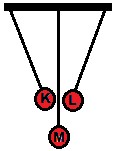 Şekilde M küresi K ve L kürelerini çektiğine göre, K, L ve M kürelerinin yükleri sırasıyla aşağıdakilerden hangisidir?