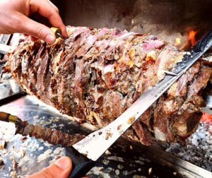 Resimde cağ kebabının pişirilmesi görülmektedir. Cağ kebabı hangi yöremize ait bir yemektir?
