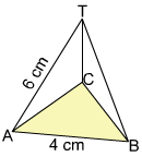 Şekildeki eşkenar üçgen dik piramitte, |AB| = 4 cm, |AT| = 6 cm´dir.