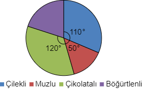 Yukarıda, bir pastanede üretilen pasta türlerinin satış sayısına göre dağılımı daire grafiğinde gösterilmiştir.