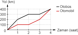 Grafik: Bir Otomobil ve Otobüsün Aynı Sürede Aldıkları Yolların Zamana Göre Değişimi