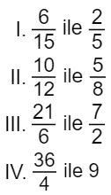 Yukarıdaki oran çiftlerinde hangisi veya hangileri orantı oluşturmaz?