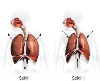 Aşağıda verilen iki farklı olayda; akciğerler, diyafram ve göğüs boşluğunun durumları gösterilmiştir.