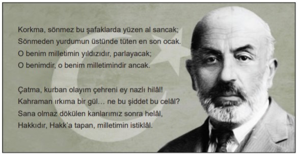Ruhumun senden İlâhî, şudur ancak emeli:Değmesin mabedimin göğsüne nâmahrem eli!Bu ezanlar ki şehâdetleri dinin temeliEbedî yurdumun üstünde benim inlemeli