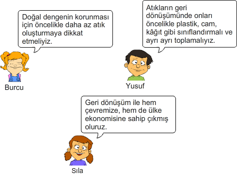 Geri dönüşüm ile yeni kağıt yapmanın faydalarını yukarıdaki öğrencilerden hangileri doğru olarak ifade etmiştir?