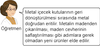 Bu örnekteki gibi üretim sırasındaki işlemlerin azalması geri dönüşümün faydalarından hangilerini destekler?