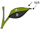 Yeşil bir bitkinin yaprağı, aşağıda verilen şekildeki gibi yarısı ışık geçirmez siyah bir bantla kapatılıp akşama kadar bekletiliyor.