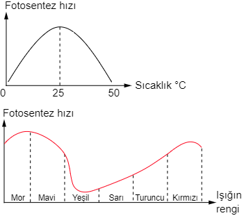 Elodea, yetiştirilmesi çok kolay olan bir su bitkisidir. Akvaryumlarda çok sık görülen bu bitkinin fotosentez sonunda ürettiği oksijen, kabarcıklar halinde gözlenebilir. Bu özelliklerinden dolayı Elodea, fotosentez ile ilgili deneylerde çok sık kullanılır. Fotosentezin gerçekleşme hızı, bazı çevresel ve genetik faktörlere bağlı olarak değişir. Fotosentezi etkileyen faktörlerden sıcaklık ve ışığın renginin fotosentez hızına etkisi, aşağıdaki grafiklerde gösterilmiştir.