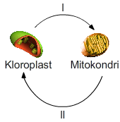 Aşağıda bir hücrede mitokondri ve kloroplast organellerinin faaliyetlerine bağlı olarak aralarındaki madde alışverişi gösterilmiştir.