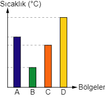 Aşağıdaki grafik, bazı bölgelerin sıcaklık değerlerini göstermektedir.
