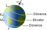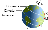 Aşağıda Dünya belirli bir konumdayken üzerinde bulunan K, L ve M bölgeleriyle ilgili bazı bilgiler verilmiştir. Dönenceler üzerindeki bölgelere Güneş ışınlarının daha dik düştüğü bilinmektedir.