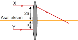 İnce kenarlı merceğin asal eksenine paralel gelen X ve Y ışınlarından, X ışını şekildeki yolu izlemektedir.