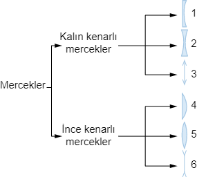 Aşağıdaki şemada mercek çeşitleri numaralandırılarak gösterilmektedir. Şemada hata yapıldığı bilinmektedir.