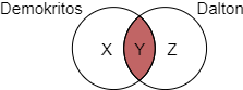Yukarıda, Demokritos ve Dalton ’un atom hakkındaki görüşleri şema üzerinde sembolize edilmiştir. Şemadaki X bölümü yalnız Demokritos´un, Z bölümü yalnız Dalton ’un görüşlerinden oluşurken Y bölümü ise ortak görüşlerini ifade etmektedir.