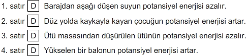 Buna göre, verilenlerden hangileri kinetik enerjiye sahiptir?