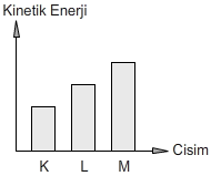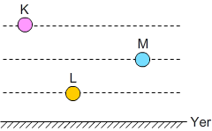 K, L ve M cisimleri şekildeki gibi konumlandığında yere göre potansiyel enerjileri eşit oluyor.