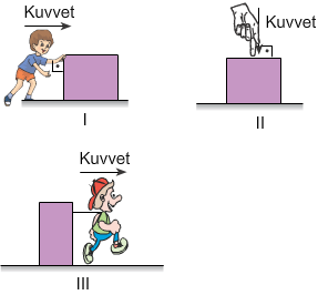 Yukarıdaki şekillerin hangilerinde kuvvet fiziksel anlamda iş yapabilir?
