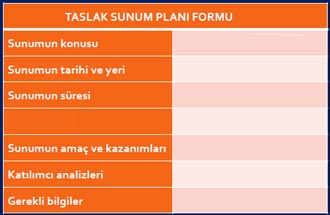 Yukarıda bir sunuma ait taslak plan yer almaktadır. Taslağın 4 satırında boş brakılan yerde aşağıdaki bilgilerden hangisi olmalıdır?