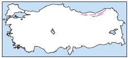 Yukarıdaki Türkiye haritasında, Doğu Karadeniz’deki dağların uzanışı gösterilmektetir. Şekle göre dağların uzanışı aşağıdakilerden hangisine sebep olmamıştır?