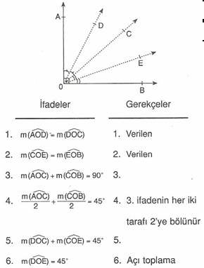 Komşu tümler iki açını açıortaylarının oluşturduğu açının ölçüsü 45 derecedir.