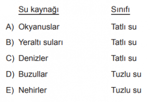 Aşağıdaki su kaynakları ve sınıflandırmalarından hangisi doğrudur?