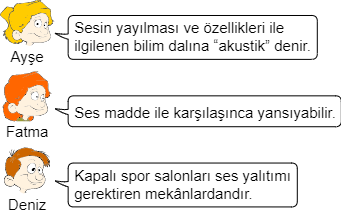 Yukarıda ses ile ilgili olarak hangi öğrencilerin söyledikleri doğrudur?