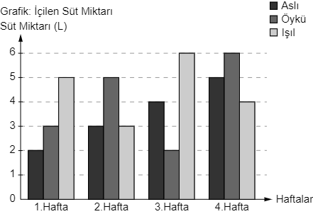 Üç öğrencinin içtiği süt miktarının verildiği bu grafikten hareketle verilenlerden hangisi söylenemez?