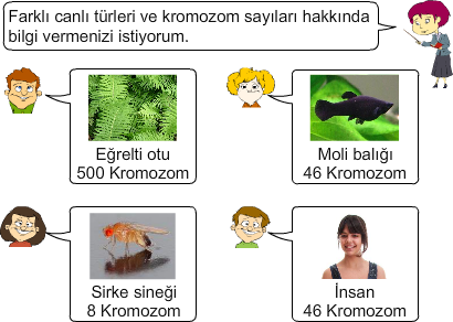 Öğretmenlerinin isteği ile öğrenciler farklı canlı türlerinin kromozom sayıları hakkında yukarıdaki bilgileri veriyor.