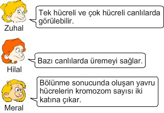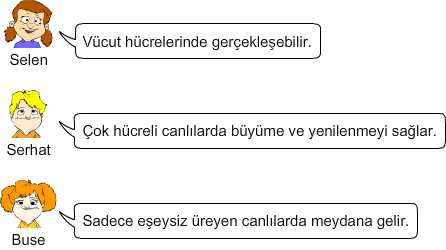 Yukarıdaki öğrenciler mitoz ile ilgili bazı bilgiler vermişlerdir.