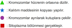 Aşağıda mitoz sırasında gerçekleşen olaylar sembollerle gösterilmiştir.