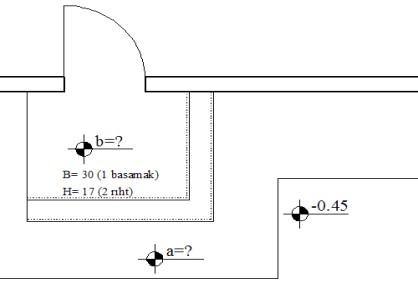Verilen planda tretuvar yüksekliği 20 cm ise eksik bırakılan kotlar aşağıdakilerin hangisinde doğru verilmiştir?