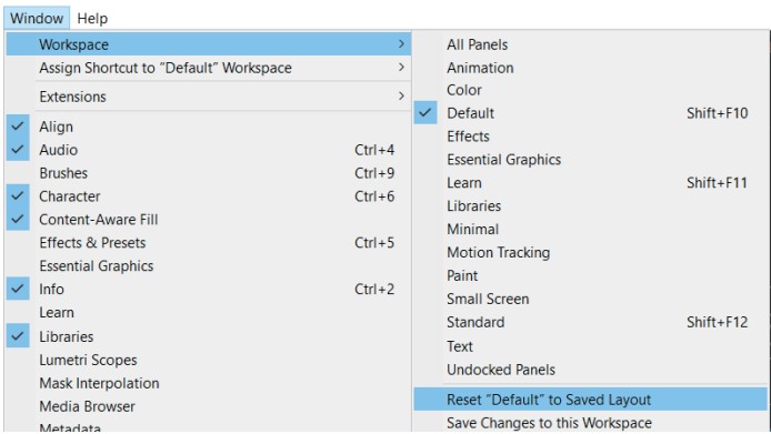 Verilen bu menü konumundan seçilecek Reset "Default" to Saved Layout seçeneği ile aşağıdaki işlemlerden hangisi gerçekleştirilir?