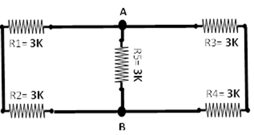 Aşağıdaki devrede A ve B noktaları arasındaki eşdeğer toplam direnç kaçtır? ( RAB=? )