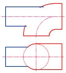 Aşağıda birbiri ile kesişen silindir ile dirseğin ara kesitini kesme düzlemleri metodunu uygulayarak bulunuz. Görünürlük tespiti yaparak görünüşleri tamamlayınız. Çözümü bir A4 kâğıdını masanıza bağlayarak yapınız. Ölçüleri şekil üzerinden alıp iki kat büyüterek çiziniz.