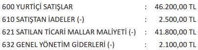 Yukarıdaki bilgilere göre brüt satış kârı hangi seçenekte doğru olarak verilmiştir?