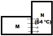 Birbirine temas eden M ve N cisimleri arasındaki ısı akışının yönü şekildeki gibidir. N cisminin sıcaklığı 64 ºC olduğuna göre M cisminin sıcaklığı aşağıdakilerden hangisi olamaz?