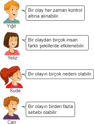 Olayların çok boyutluluğu ile ilgili yukarıdaki öğrencilerden hangisinin verdiği bilgi yanlıştır?