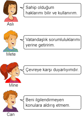 Hangi öğrencinin verdiği bilgi sosyal bilgiler eğitimi alan, etkin vatandaşlık bilincine sahip bir bireyin davranışları arasında yer almaz?