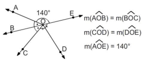 Yukarıda verilen şekilde E, O, C noktaları ve A, O, D noktaları doğrusaldır.