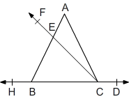 Yukarıdaki şekilde ABC üçgeni, CF ışını ve HD doğrusu verilmiştir.