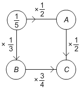 Yukarıda ok yönünde gösterilen işlemler yapılarak elde edilen A, B ve C kesirlerinin çarpımı kaçtır?