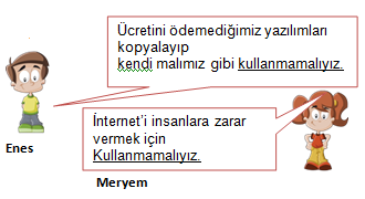 Enes ve Meryem ’in Bilişim Etiği hakkında verdikleri bilgiler şekildeki gibidir.